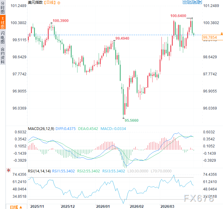 周三亚市时段,好意思元指数于99.80隔邻窄幅漂泊,此前一个交游日好意思元指数显耀回调,日内跌幅0.61%。
