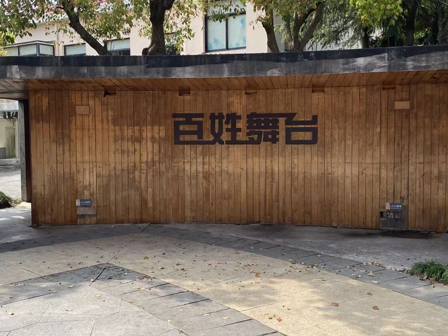 接到响应后,记者赶紧赶赴现场造访。佳虹住户区新期间闲雅实行站位于佳虹路近永建路北侧,紧邻佳虹居委外部区域。刚踏入这片区域,文化长廊、庶民舞台等要害便映入眼帘:长廊两侧的木质座椅干净整洁,廊下吊挂着的字画作品透着浓浓的文化气味;庶民舞台的红色幕布平整舒展,仿佛随时皆能献艺一场住户们的文艺盛宴。午后的阳光透过树叶洒下斑驳光影,几位老东说念主坐在长廊里漫谈,孩童在一旁追赶嬉戏,处处足够着随和的东说念主间火食气。