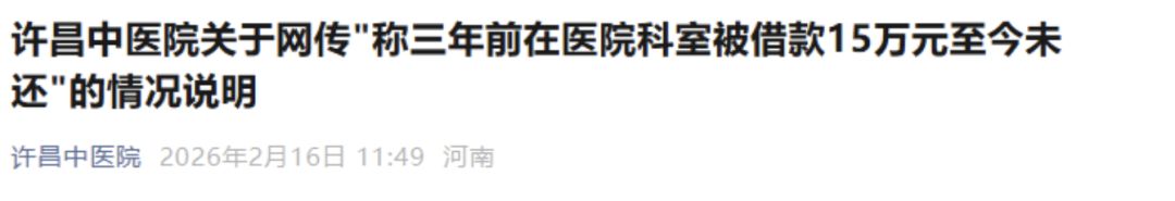 2月16日,许昌中病院在微信公众号发布情况阐明。全文如下——