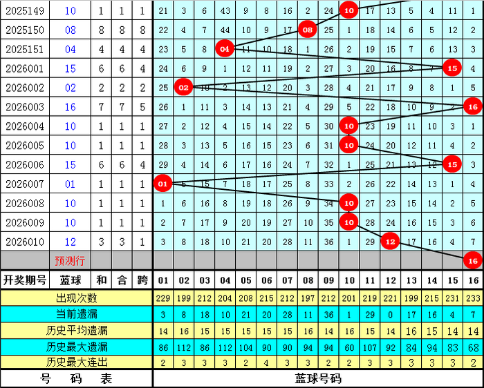 蓝球:上期蓝球号码为12,开出偶数、大号,蓝球最近7期大小比为6:1,本期注意大号蓝球出现,蓝球关注16。