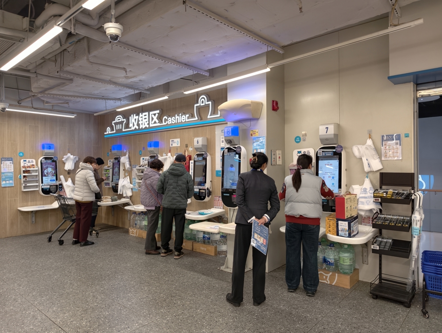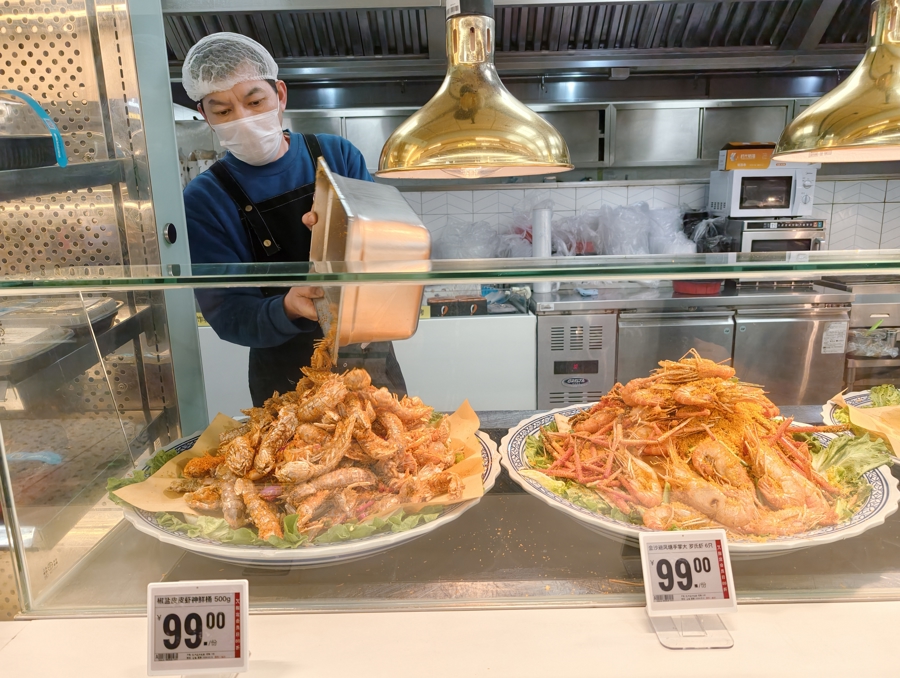 记者到访时,是下雨天兼职责日下昼,可盒马的客流依旧不停,买单率也很高