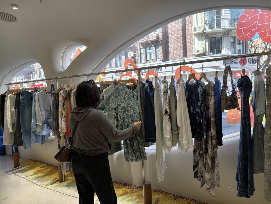 有联想感的衣饰招引了不同庚纪的女性,以致有“潮”爷叔来上海妇女用品商店买阔腿牛仔裤