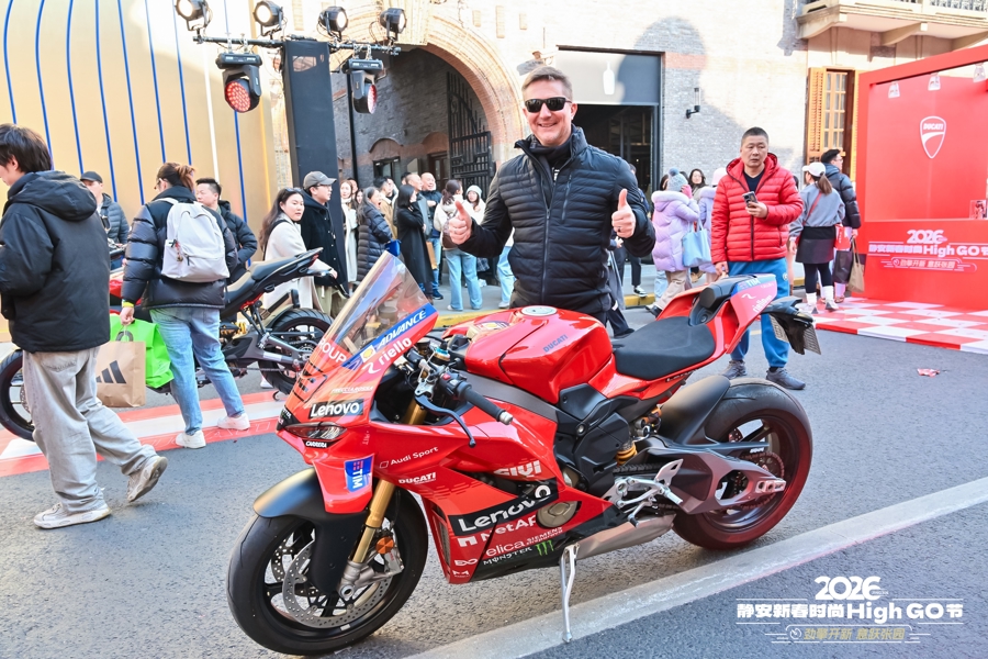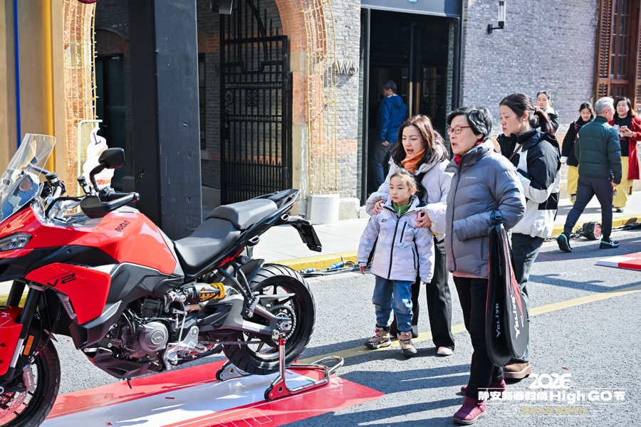 昨天,首届“2026静安新春时尚HighGO节”开幕,也拉开了静安区迎新促消费的序幕。1月24日至25日,意大利摩托车品牌杜卡迪“劲擎启新,意跃张园”IP活动在张园及茂名北路限时步行街举行,百年意式机械美学与百年石库门建筑发起了跨时空对话。