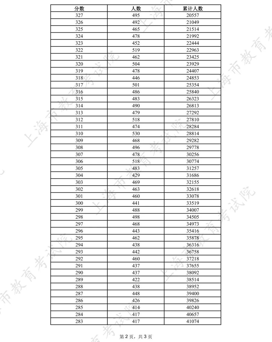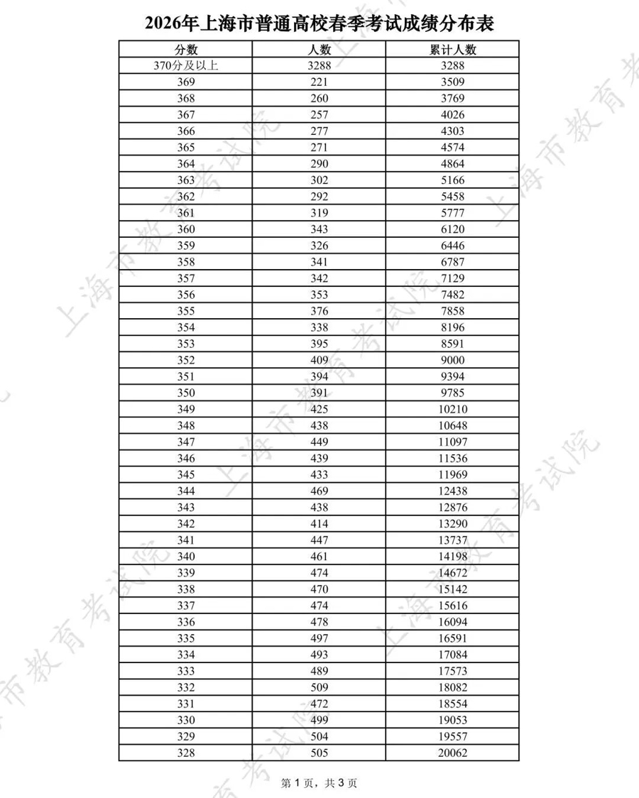 2026年上海市普通高校春季考试成绩分布表详见下方:
