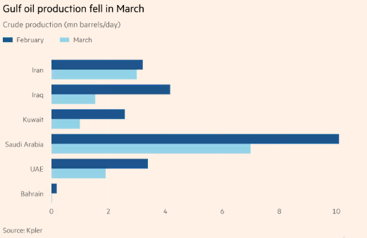 动力盘考机构Kpler数据融会,由于伊朗实质上封闭了霍尔木兹海峡,迫使列国减产,配资查询3月份海湾地区原油产量下滑39%。通盘海湾国度均被动减产,其中伊拉克、科威特和巴林减产幅度最大,因这三国对霍尔木兹海峡的依赖度极高。