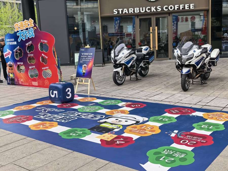 行为现场,在银杏广场上,4位物流、快递外卖行业从业者的安全命令拉开了行为序幕。现场建筑的“吉祥快闪”门径连忙荟萃了东谈主气,“交通安全飘扬棋”“酒驾体验站”等互动技俩按序排开,不少途经的市民藏身参与。刚摘下酒驾模拟眼镜的市民坦言:“看东西皆是恍惚的,酒后开车太危急了。”孩子们则围在广泛的飘扬棋盘前,一边掷骰子一边学习交通轨则,在游戏中记着了“过马路不可嬉戏驱驰”“骑乘电动自行车要捎带安全头盔”等交常学问。