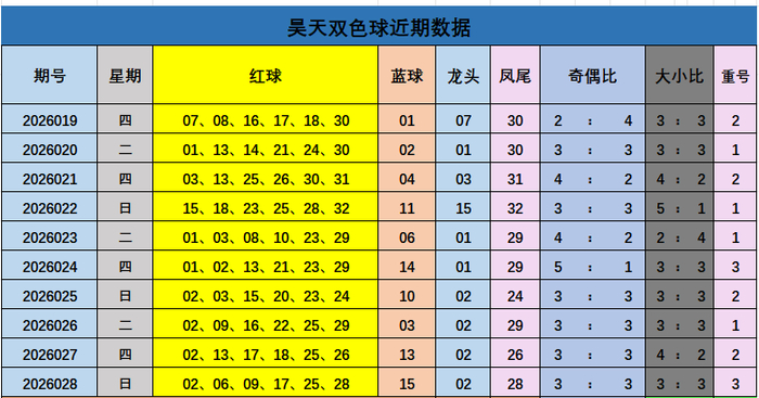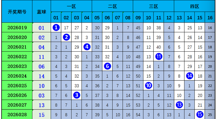 上期蓝球中奖号码为15,近10期蓝球概括奇偶比5:5,奇偶数走势交流,本期保举偶数06。
