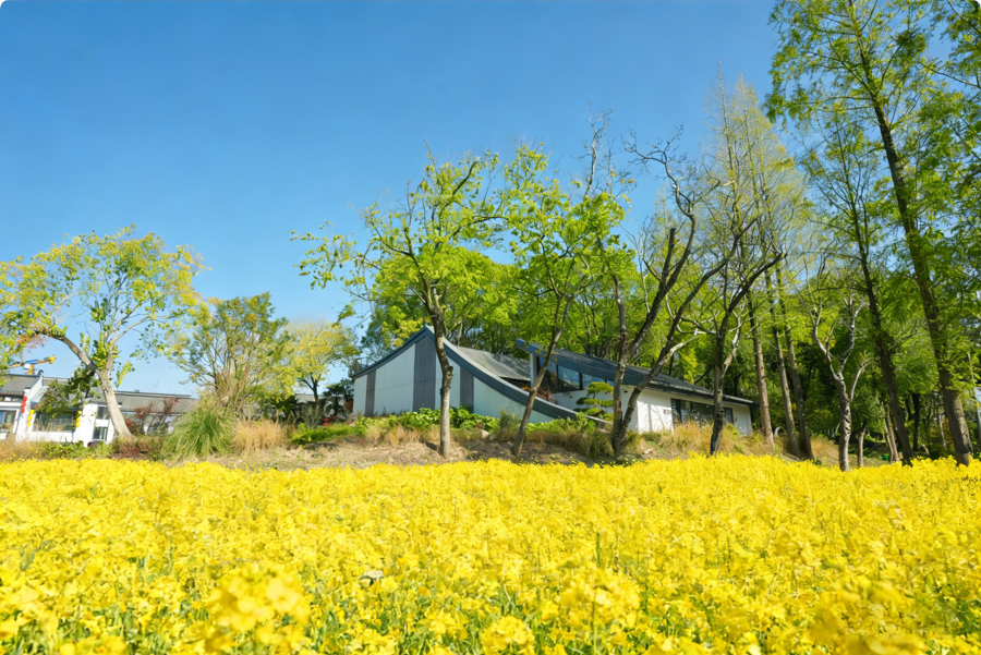 土丘脚下的水浇地,按规定只能种植粮食作物,设计团队也照样设计了景观:第一年种植三种不同颜色的番薯,形成自然色块;第二年种植油菜,春天花开时,大片金黄与丘的翠绿相互映衬。在自然与光阴的交融中,让游客不断发现新的景致。