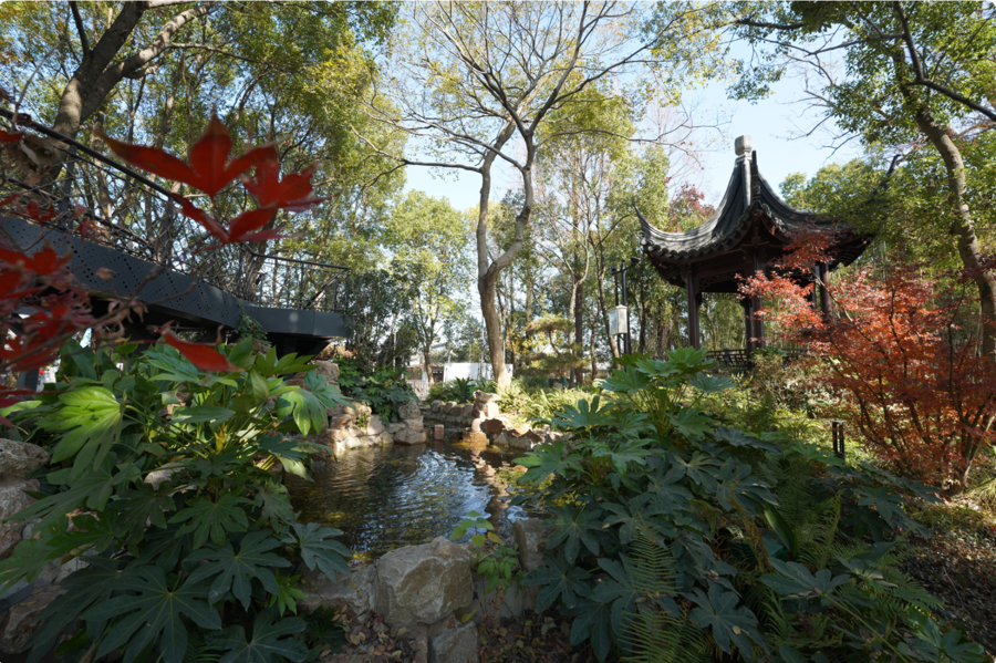 小景点的营造则融入了文化元素。短短几百米的线路,团队为几十个小景点赋予了雅致的名字,如用竹子围合而成的“竹庐雅韵”,竹林婆娑,光影斑驳。