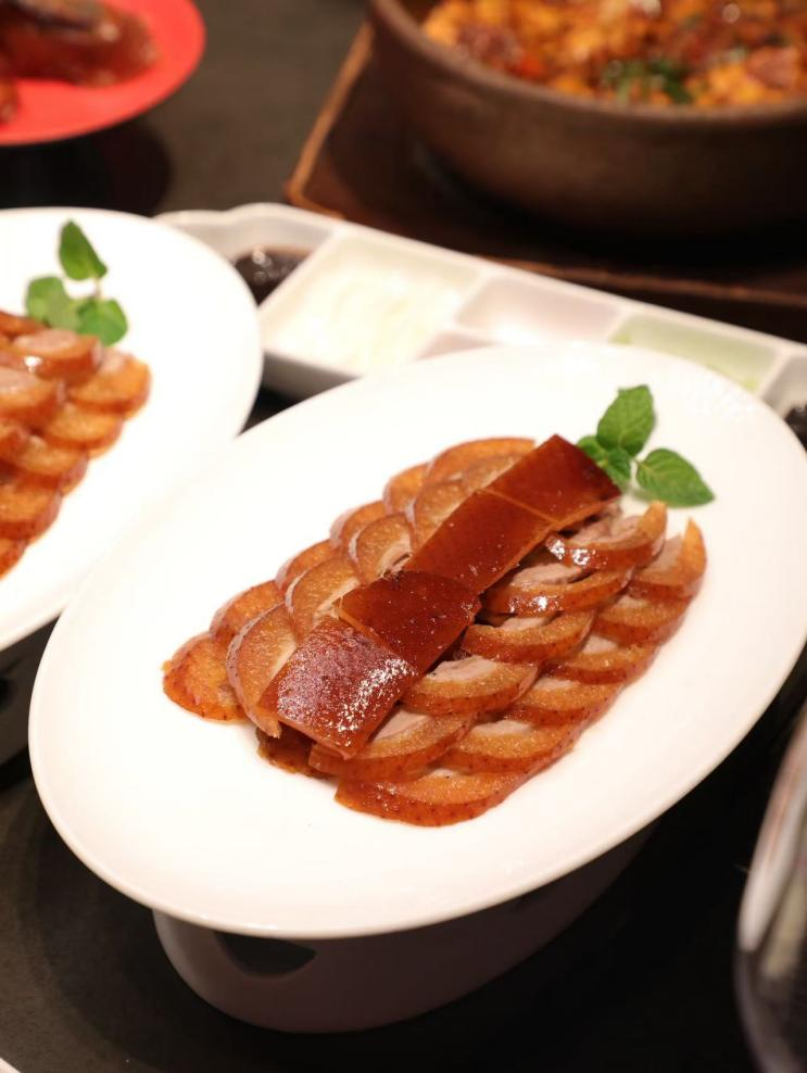 菜品研发与品控方面,北京大鸭梨秉持“传承传统工艺、融入现代烹饪”的理念,精心打造出招牌香酥烤鸭、宫保虾球、贝勒爷烤羊肉、神仙鸡、干炸小丸子等核心拳头产品,实现食材甄选、烹饪工艺、口感风味全链路标准化管控,让市民吃得放心、吃得地道。其中,招牌香酥烤鸭尤为讲究,严选净重约四斤六两的优质白羽鸭,采用250℃恒温挂炉烤制90分钟,烤出的鸭肉色泽红润、皮脂酥脆、肉质细嫩;片鸭环节恪守精细化刀工标准,保障鸭肉流汁性,同时创新推出鸭皮蘸自制玫瑰糖的吃法,搭配传统葱丝酱饼,兼顾经典风味与多元口味,满足不同年龄段食客的需求。